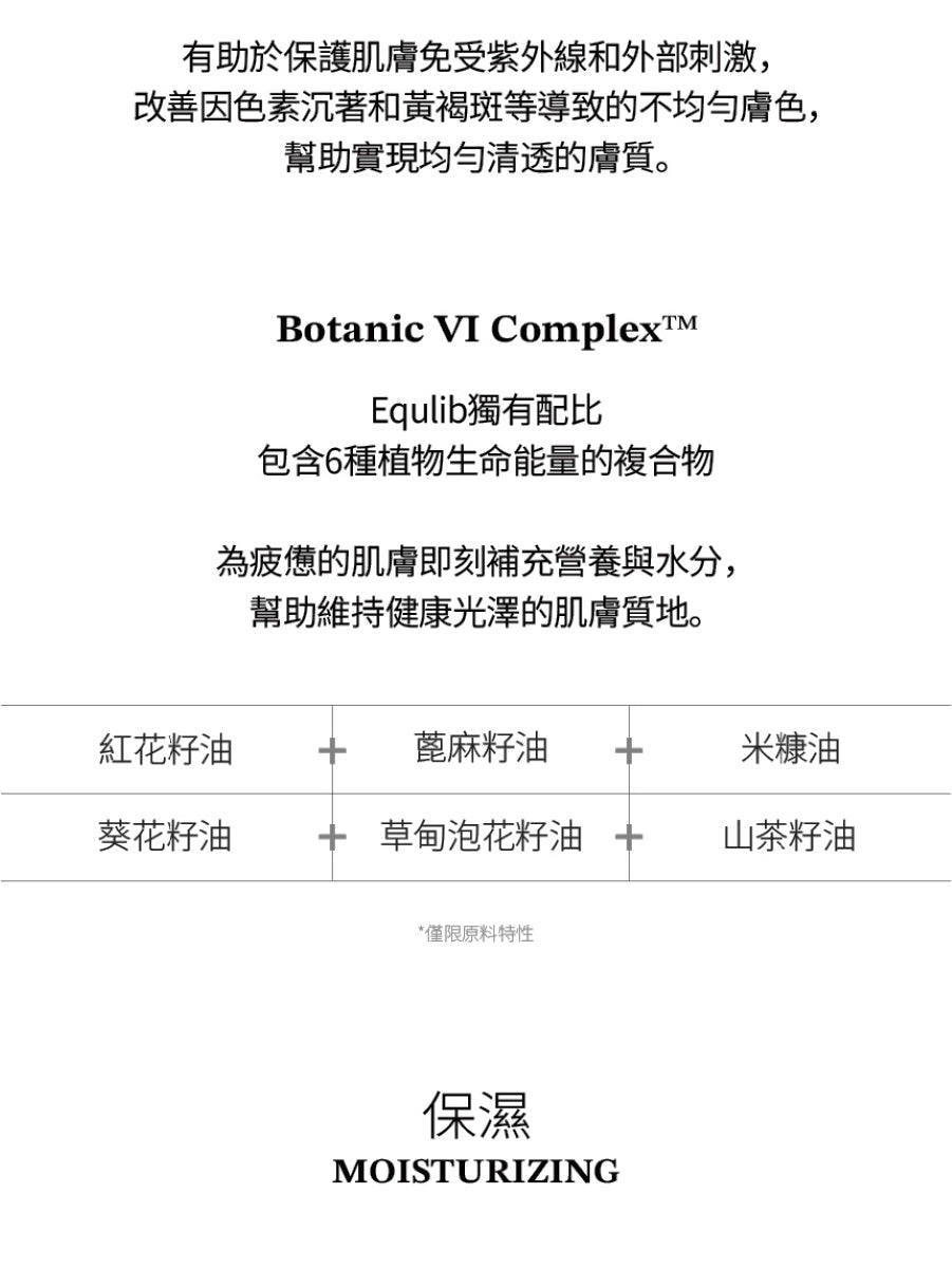 獨有配比Botanic VI Complex™:包含6種植物生命能量複合物 不含香料,無黏膩感,輕柔滲透,高濃縮液體劑型