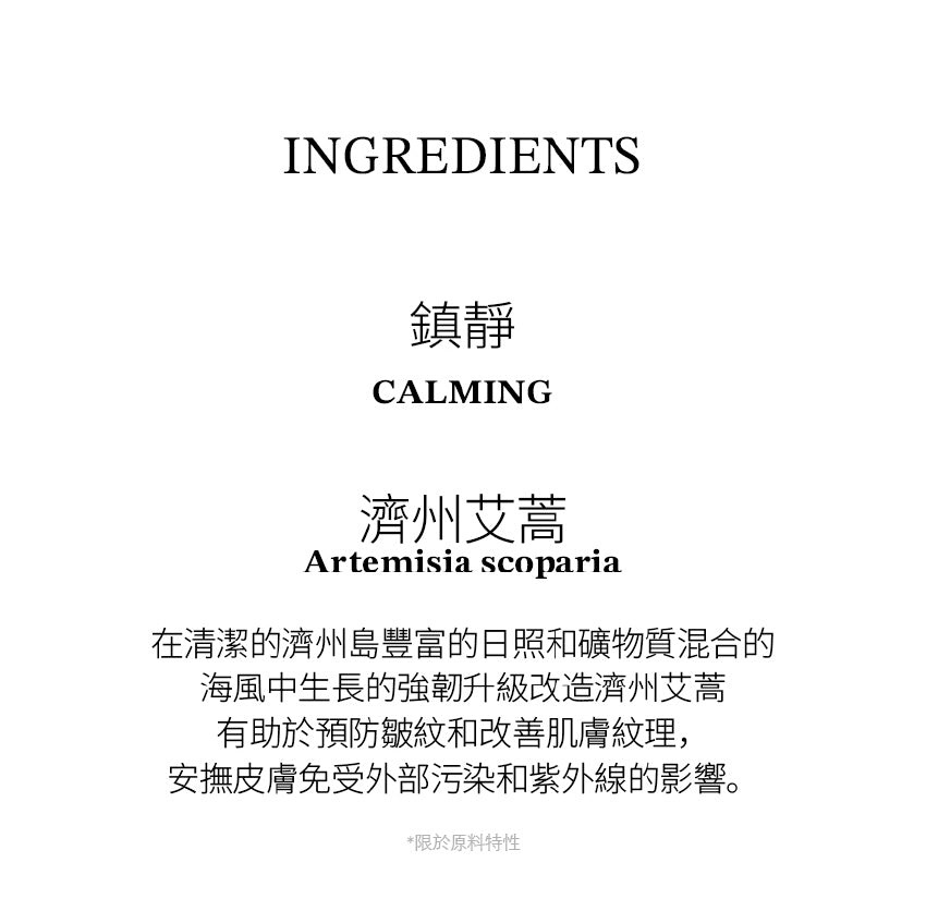 100%天然透光紙漿 使用濟州艾蒿預防皺紋及改善肌膚紋理