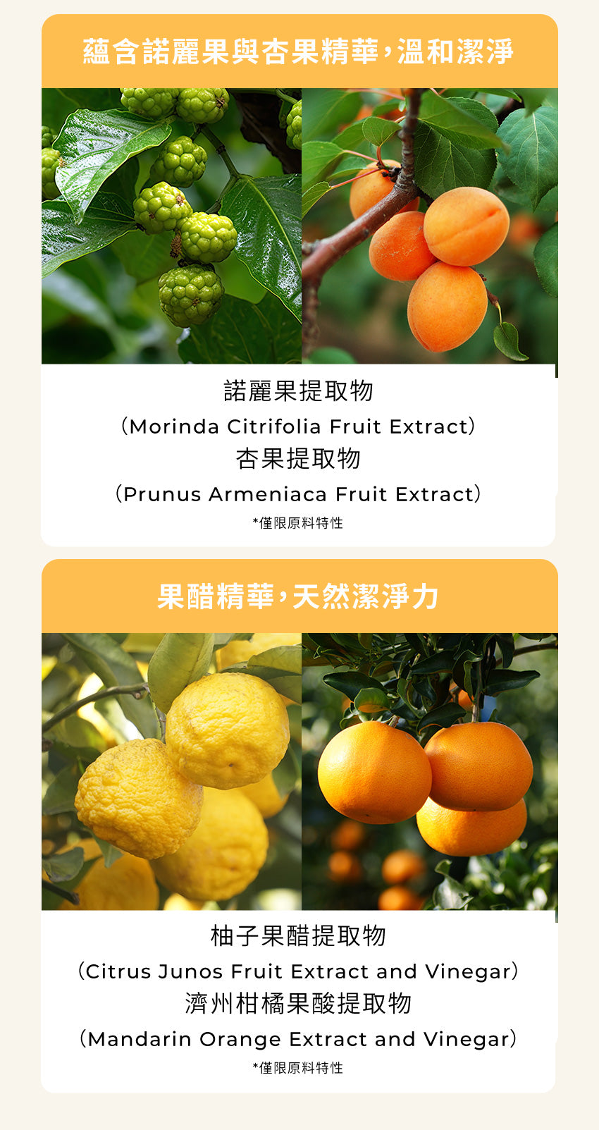 全成分 : 酒精,甘油,聚山梨醇酯-20,葡萄糖酸鈉,二丙二醇,辛酸聚甘油-6 酯,癸酸聚甘油-4 酯,辛醇甘油,苯甲酸鈉,羥基苯乙酮,諾麗果提取物,杏果提取物,柚子提取物,柑橘提取物,1,2-己二醇,丁二醇,乙基己基甘油,檸檬酸,食醋,香精