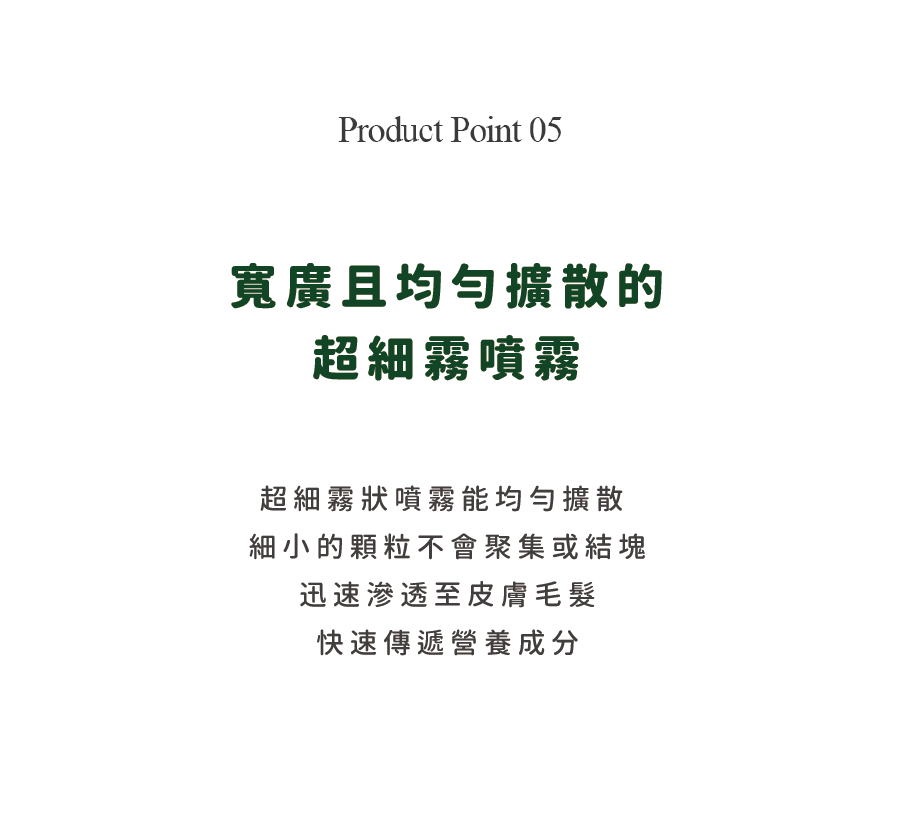 植物發酵水基底,噴灑後的分子比純水小,讓皮膚毛髮更有效吸收,
