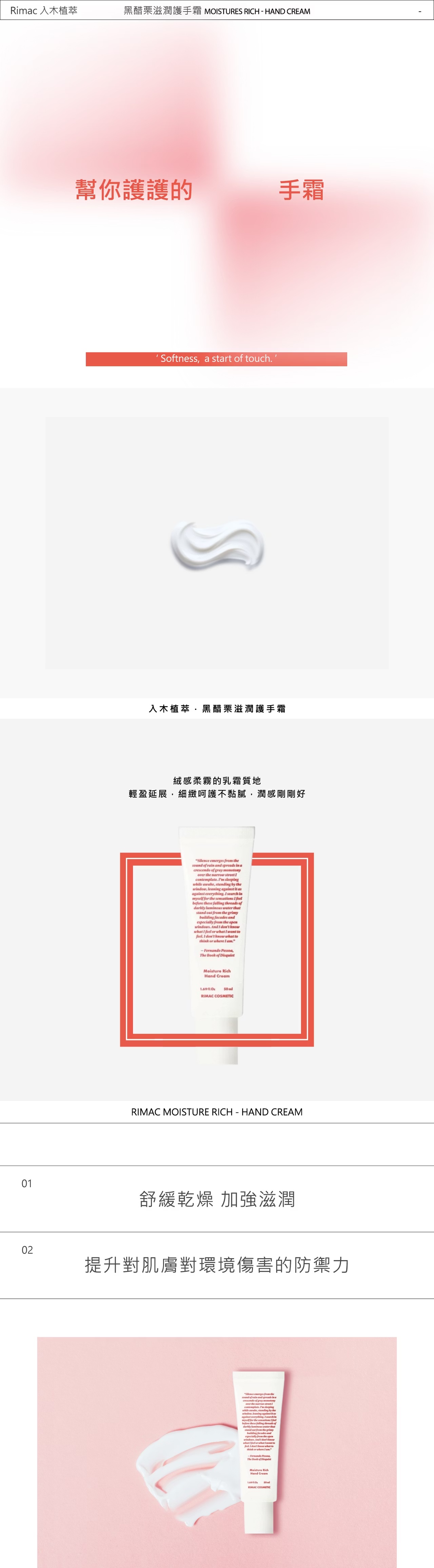 - 💧 深層滋潤乾燥雙手,質地柔滑好吸收不黏膩